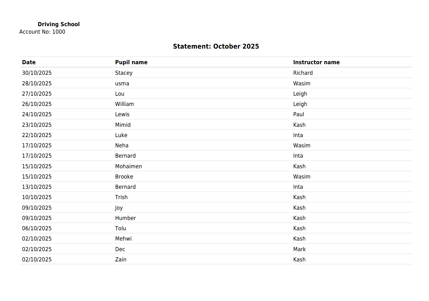 For franchises / Driving Schools wishing to select monthly reports on the Online Booking activity of their instructors, Admin use only.