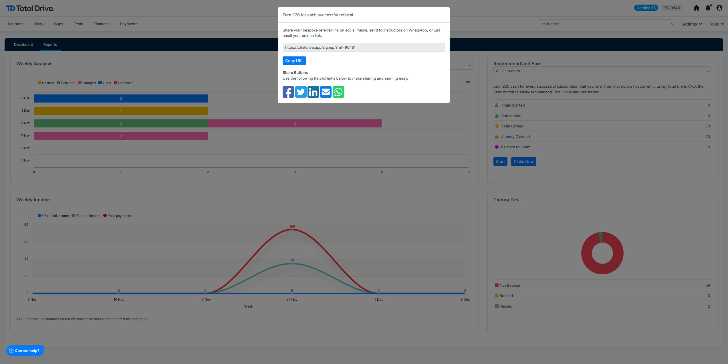 Once the instructor has signed up with your link and subscribed to the system for 3 months, you will earn your referral against your subscription which will be credited on your account.