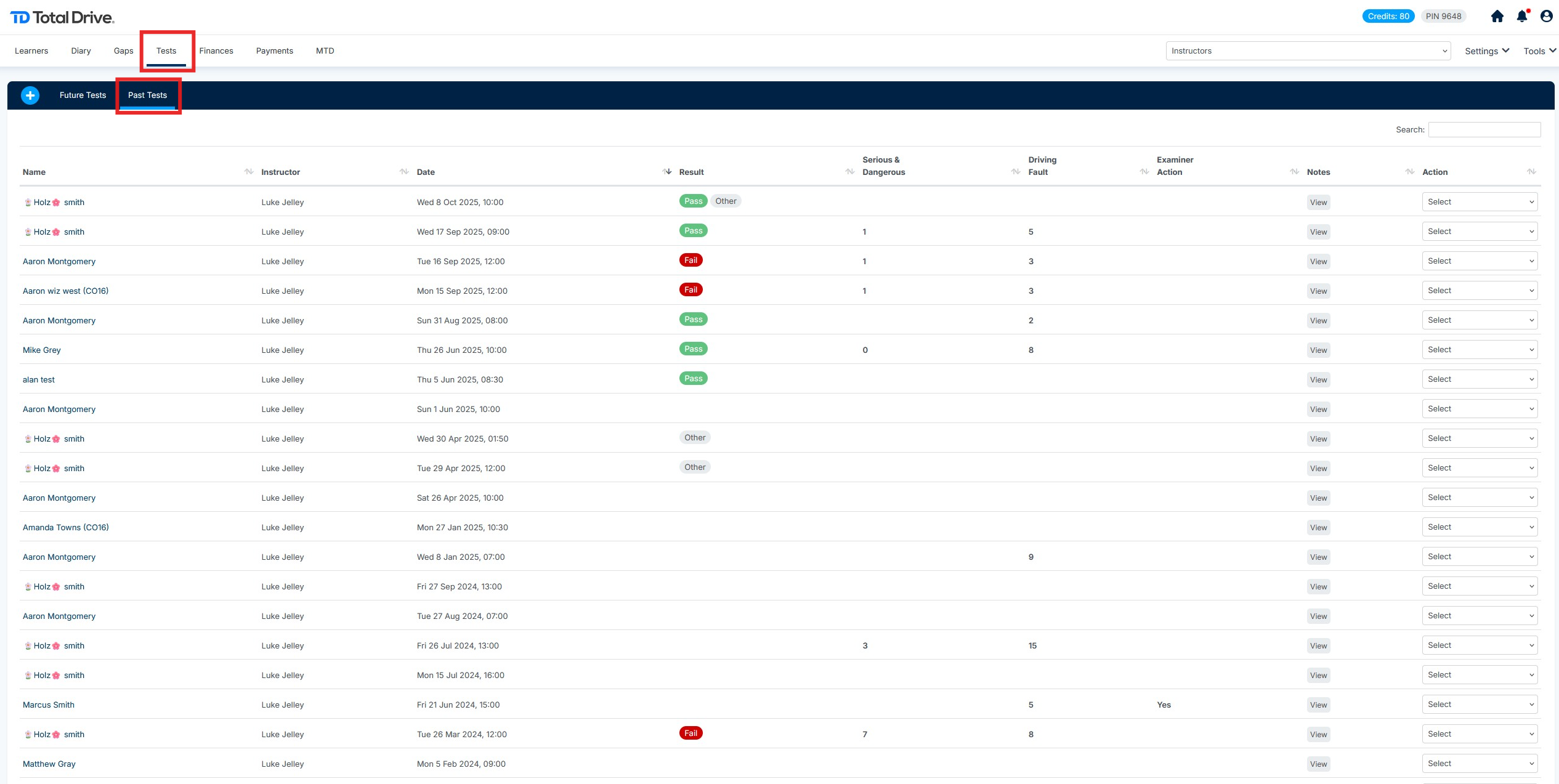 From the dashboard, click Tests >> Past Tests to display your past driving tests