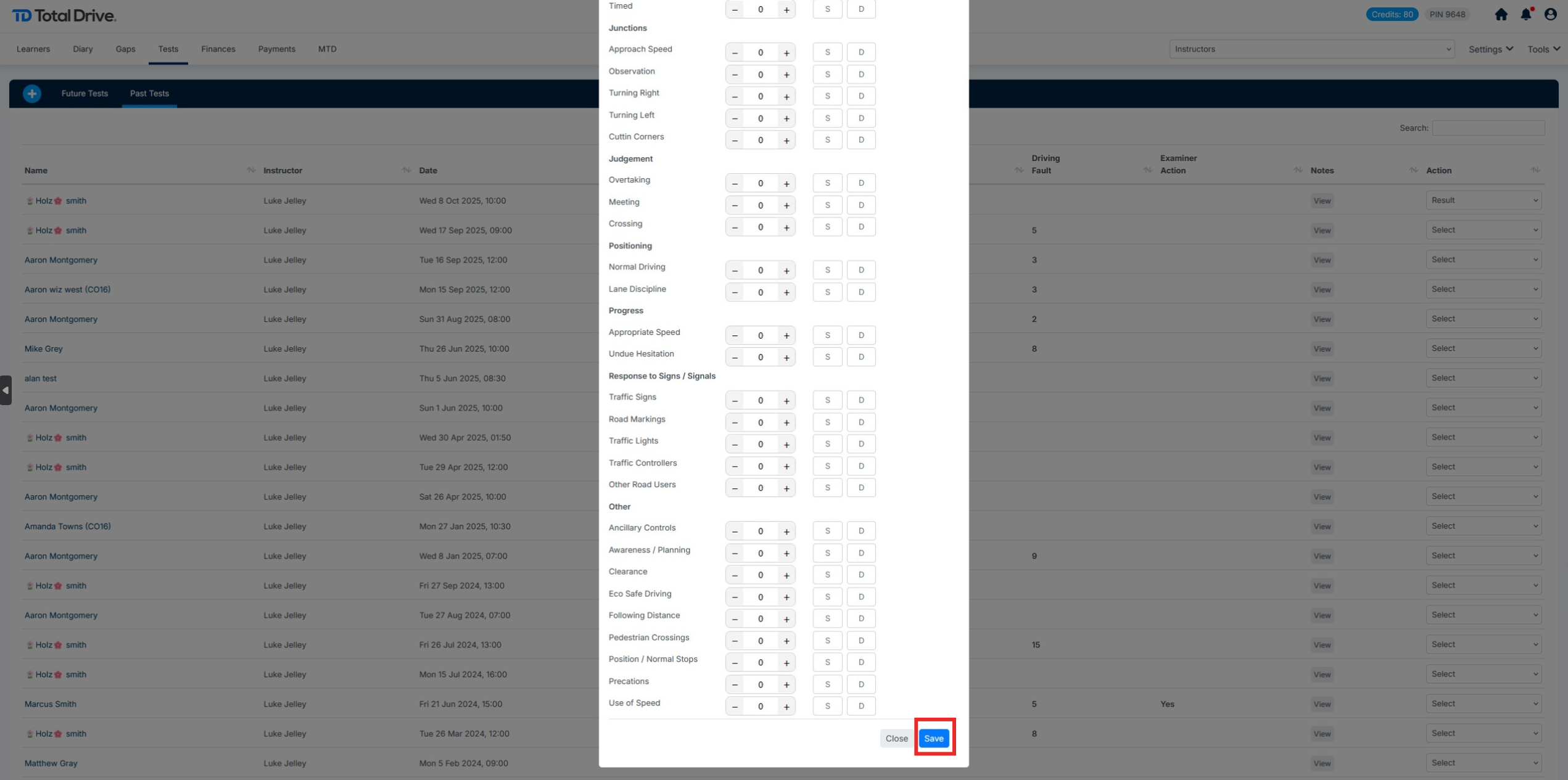 Once you have updated the Driving Test Result, you can complete the entry by clicking the save button shown below: